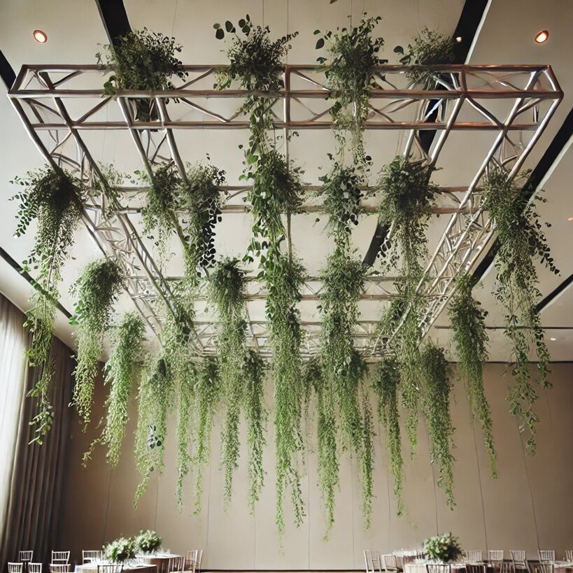 Bring the beauty of nature indoors with stunning hanging greenery installations. Perfect for weddings, luxury events, and corporate galas, our overhead greenery creates a breathtaking, organic atmosphere.